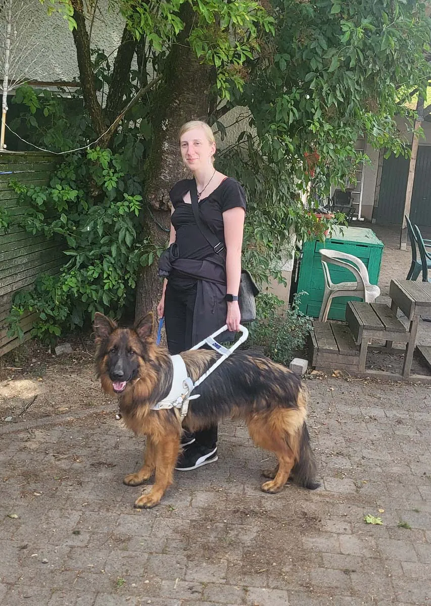 Katharina Damm unterwegs mit ihrem Blindenführhund -